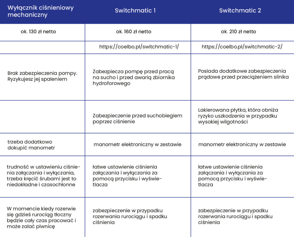Wyłącznik ciśnieniowy SWITCHMATIC 1 a inne wyłączniki, poznaj różnice!